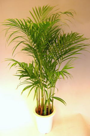 別名「コガネヤシ」。葉の中央部が濃黄色の優雅な株立ち性のヤシです。室内ヤシでは人気品種。小〜大鉢に向いています。